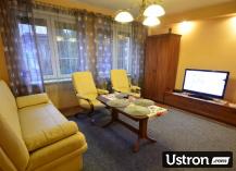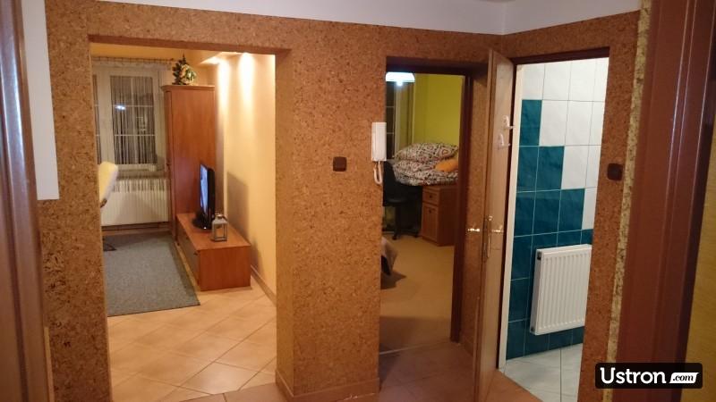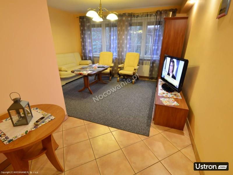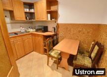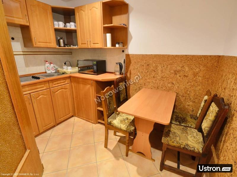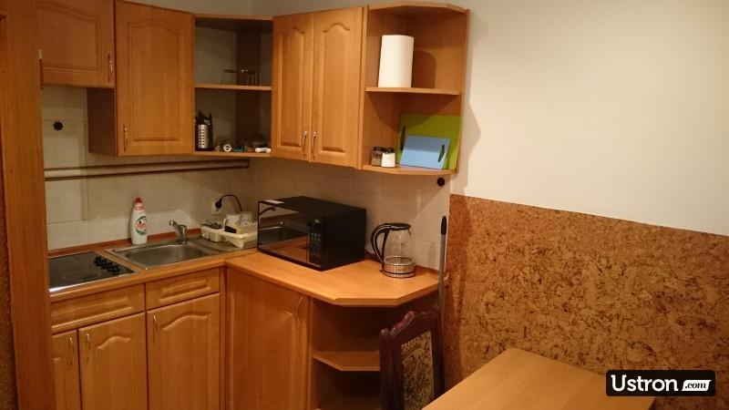 Apartament wyposażony jest w: lodówkę, kuchenkę mikrofalową,4-palnikową
